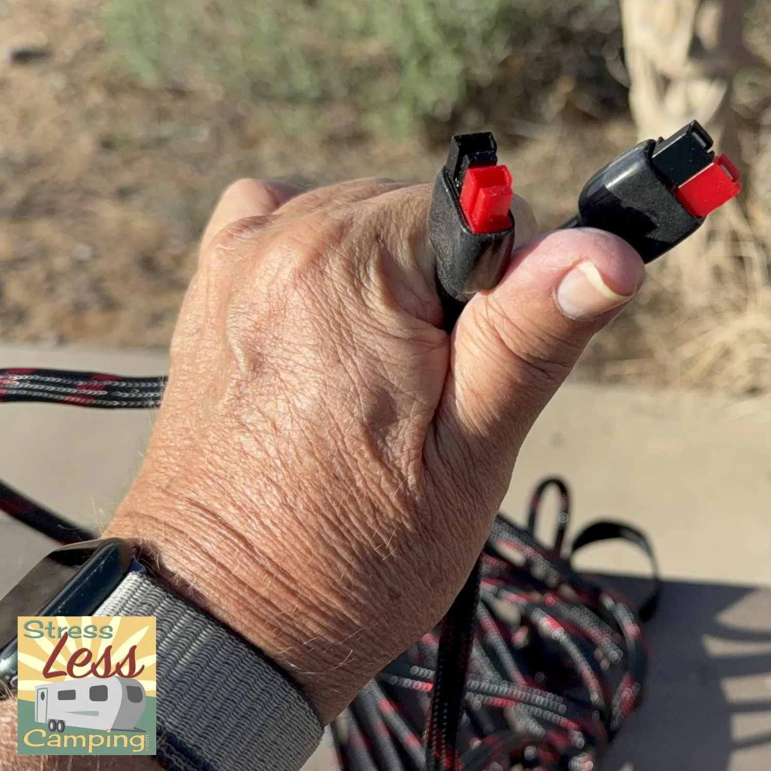 While at Quartzsite I also bought Lion Energy’s 25’ solar extension cable but I found that the connectors were oriented differently than on my GoPower Duralight 100 solar panels. I wrote to Lion Energy and they were very quick about responding that I could simply pull back the sheath on the cable and re-orient the connectors. So their customer service was quick and provided a very useful answer and that made me very happy.