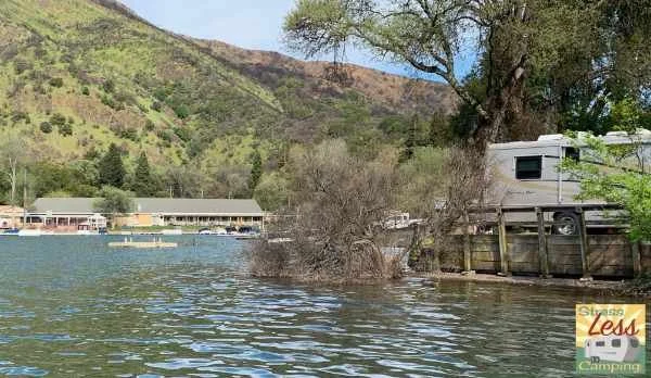 The only outlet of Clear Lake is Cache Creek, which contains a rocky ledge called the “Grigsby Riffle” and originally acted as somewhat of a dam to control the lake level. The lowest part of that riffle is known as “Zero Rumsey” and the level is reported in feet above (or below) “Rumsey.” The Cache Creek Dam was build in 1914 and is controlled by Yolo County, which holds the water rights to the lake. Yolo County also controls the Indian Valley Reservoir, with limitations.