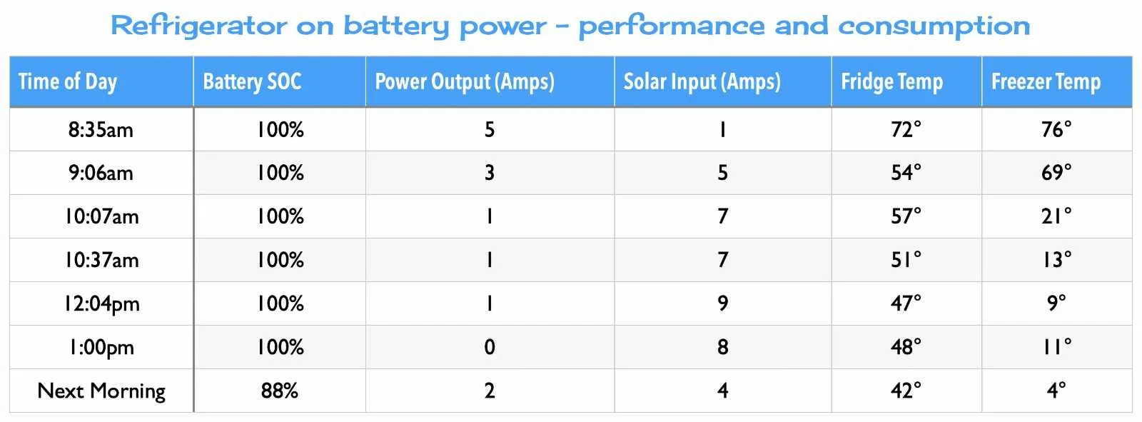 My first impression of this fridge is that it’s really well designed. I also perceived that it is remarkably efficient and this test backed that up. I’ve written that not all RV 12 volt fridges are alike and that some are much better than others.