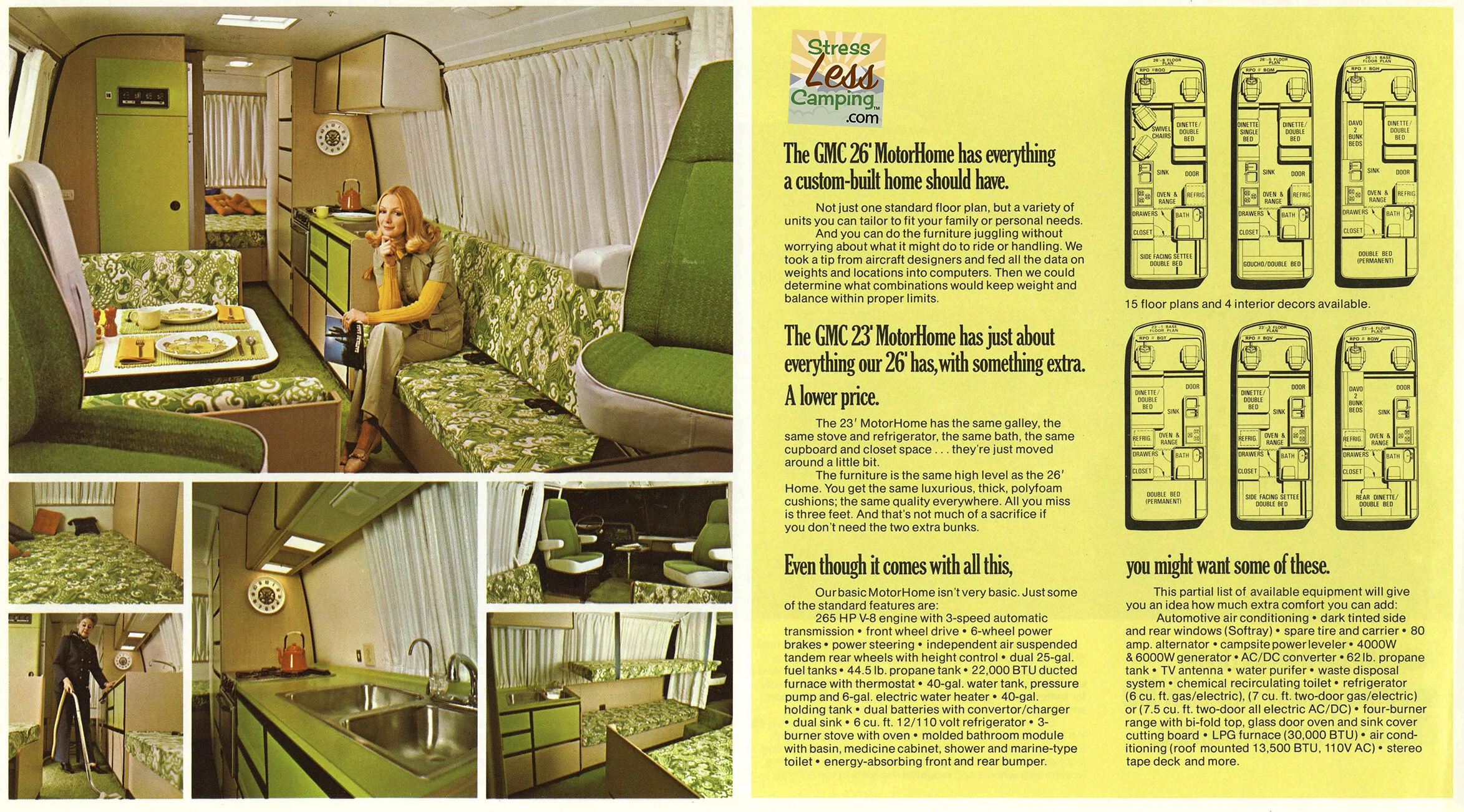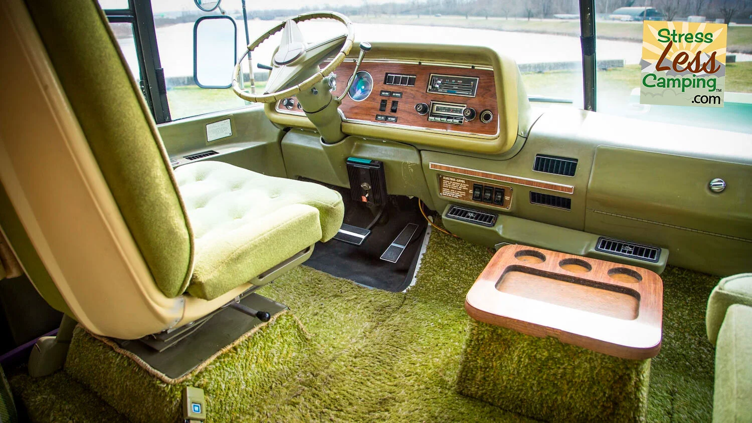 Without a lot of interior design experience in motorhomes, GM turned to House & Garden Magazine so interiors were as state-of-the-art as the engineering, featuring things like orange or green plaid, plush shag carpeting and other touches that screamed 1970s.