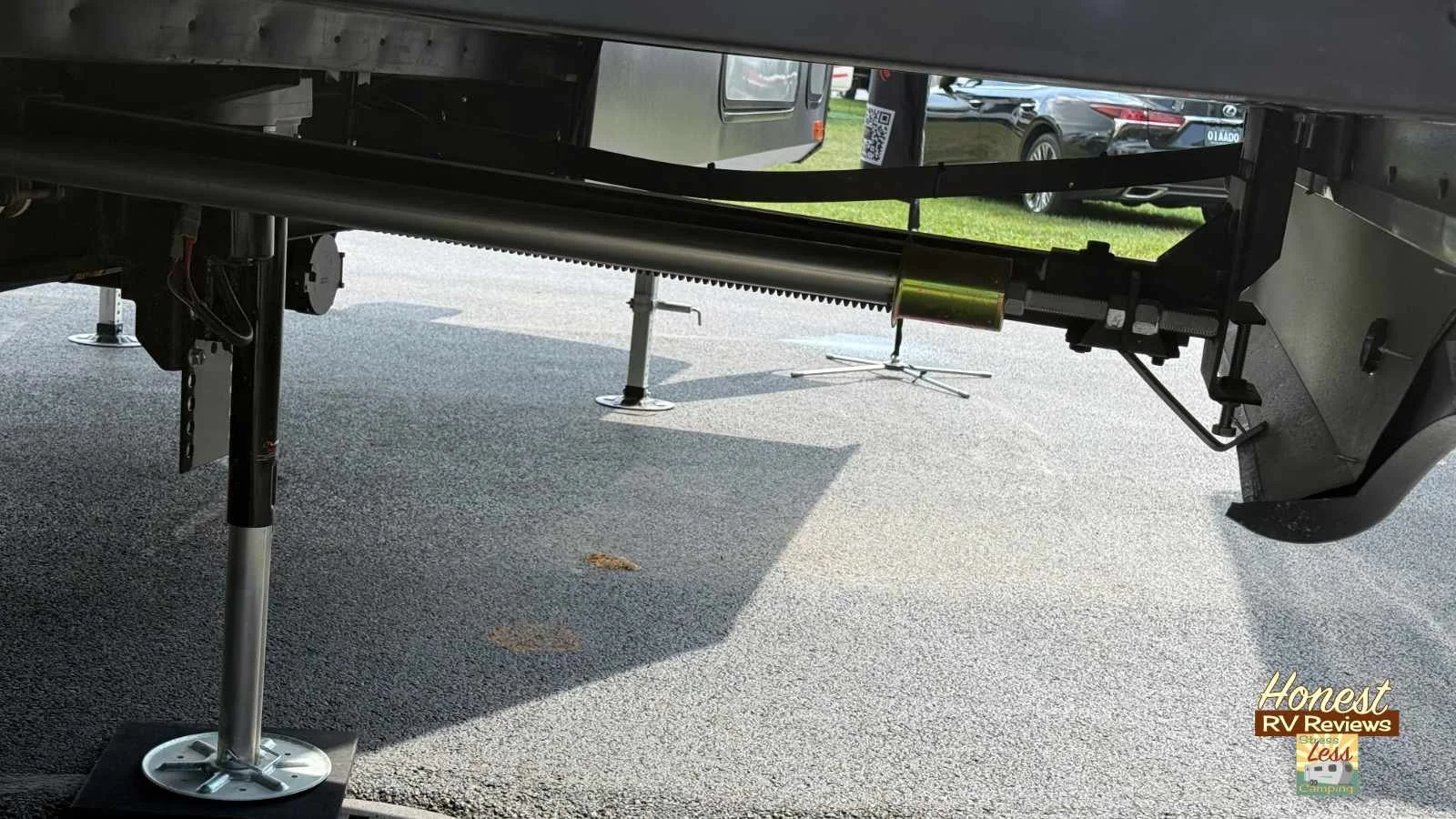 Another feature you might not notice is that this is one of the only fifth wheels on the market with what is called a slipper roller suspension. Almost all fifth wheel trailers have a simple and cheap leaf spring suspension - this is better in that shocks and jolts are directed away from the chassis - sort of.