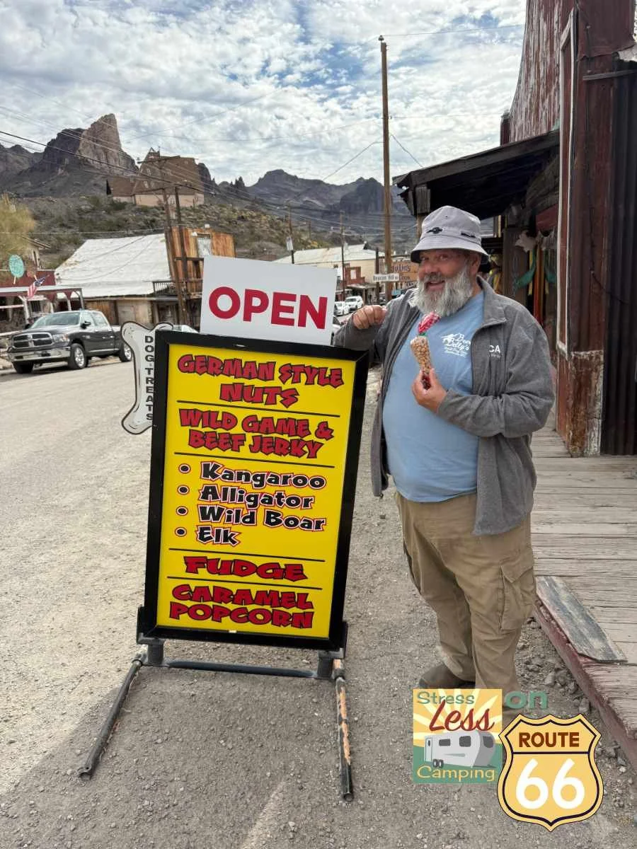 As you carefully walk along the historic wooden sidewalks of Oatman there are no shortage of t-shirt shops, leather shops and other places to buy souvenirs of your stay in this quaint mining spot along Route 66.