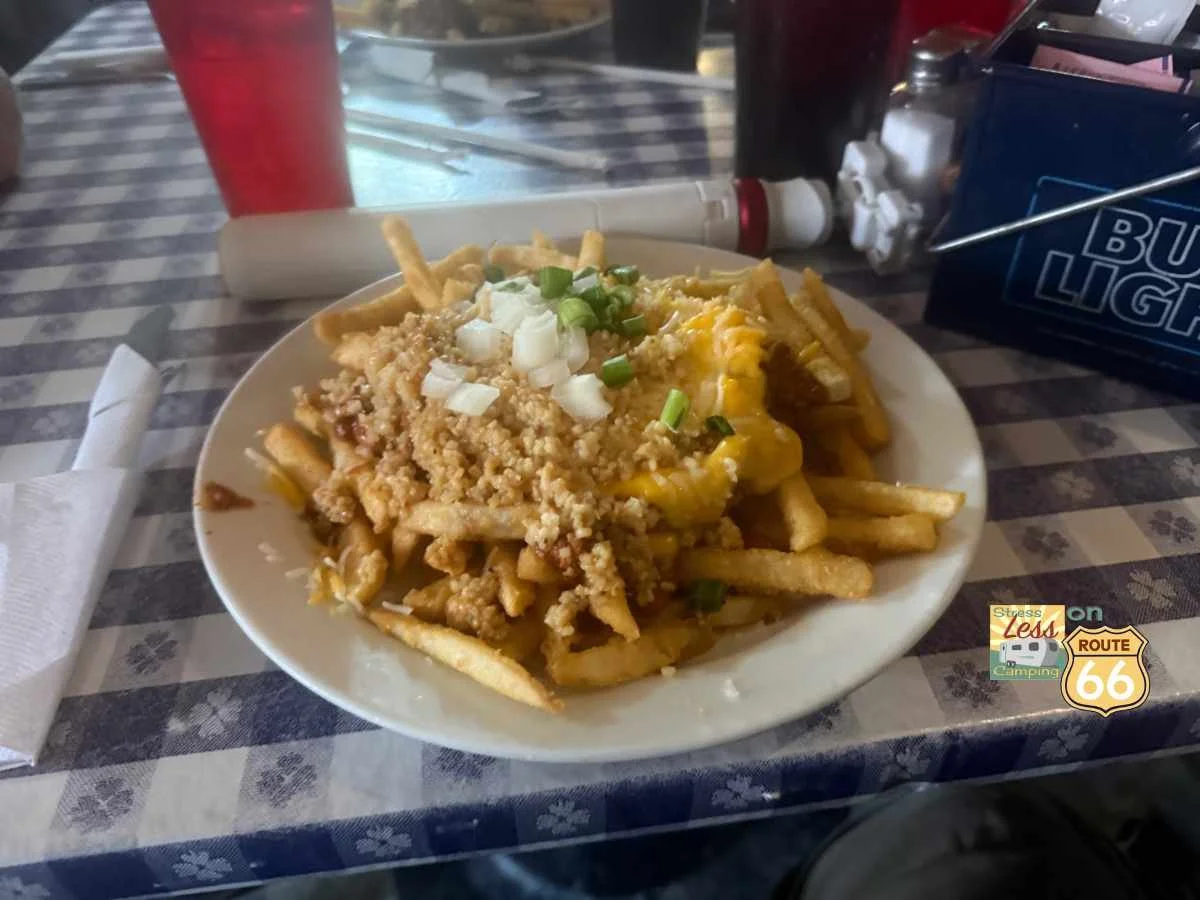 On our most recent visit we enjoyed a lunch at the Oatman Hotel Bar where Tony had chili cheese fries and Peggy got a sandwich. The chili was quite good and it was clear that it was home-made. The fries were also nice and crispy on the outside. Despite the huge number of people in the place the food was delivered relatively quickly and the servers were on top of things and friendly.
