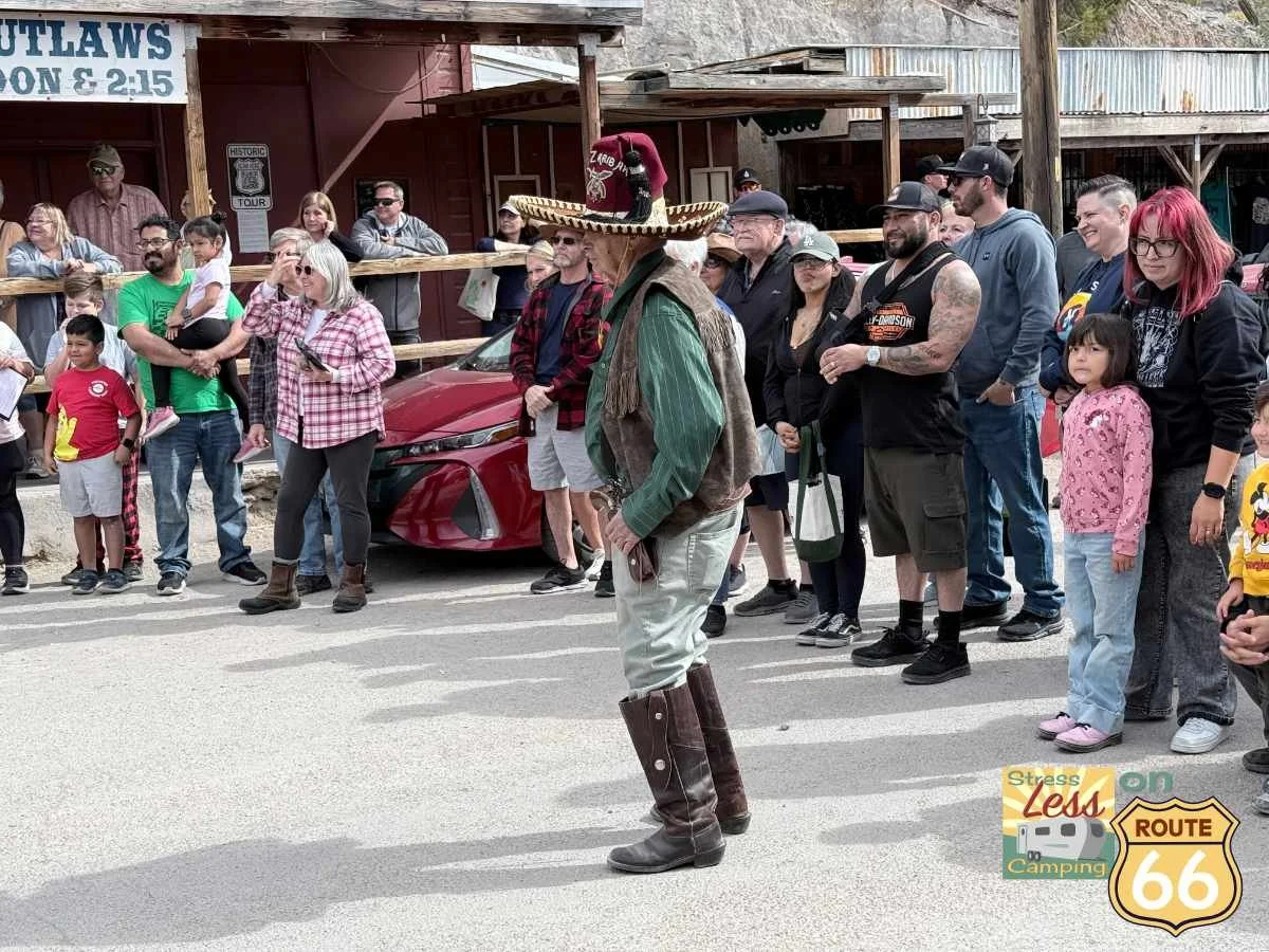 Several times a day there is a gun fight right on the streets of Oatman with two outlaws humorously trying to rob the ATM in town. The show is pretty funny and the gunslingers are good at involving the audience with cheers and jeers as they work out who gets to keep the gold.