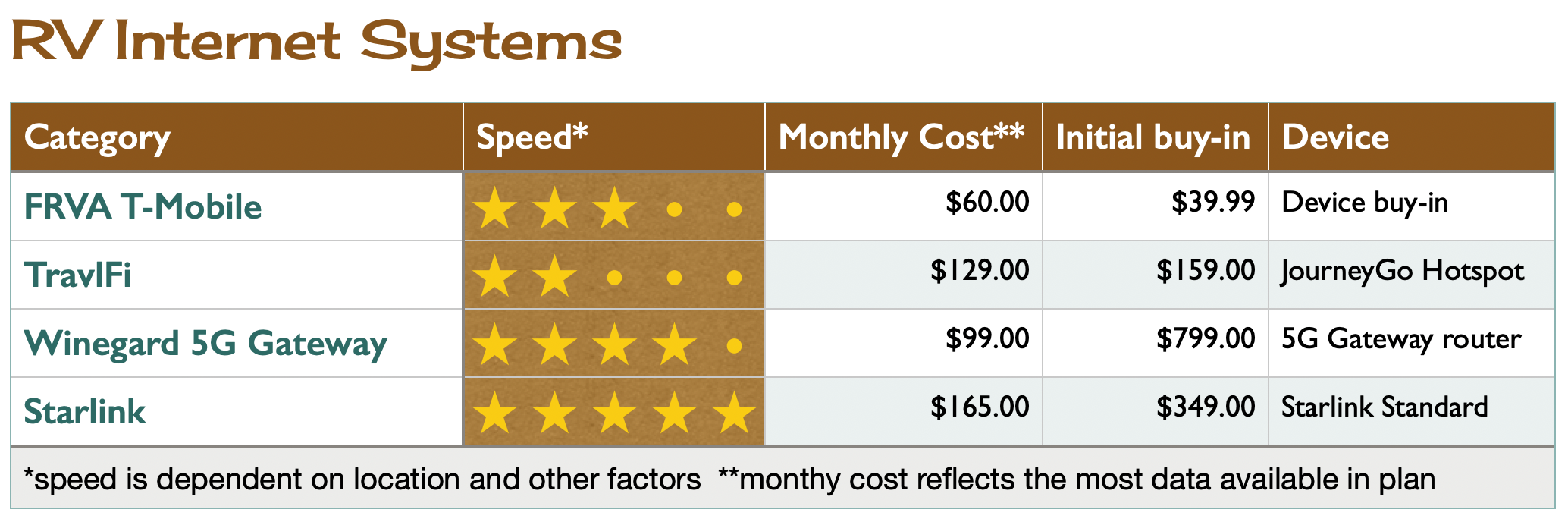 So you pick based on what you need. Another thing that having that gateway router does is if you're in a campground, it can then take a Wi-Fi signal and broadcast it inside your RV and it has a measure of security built in as well. However, Campground Wi-Fi is generally horrible.